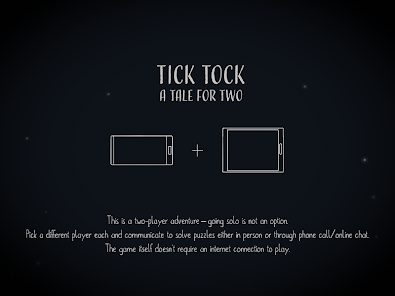 Tick Tock: A Tale for Two is an eerie cooperative puzzle game for two players. Each player needs a copy of the game on their own mobile device (phone or tablet) to play. You can also play crossplatform.