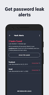 ✔ Hack Alerts: Get warned if your passwords are compromised