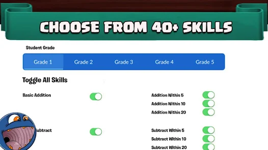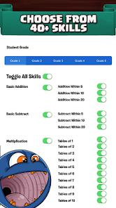 Monster Math is your child’s math facts trainer. Its fun learning games, engrossing story and adaptive learning approach makes it a superior alternative to homework or planned lessons. Math lessons designed to quiz multiple math skills at once and guide students towards improving their math skills, unlike flash cards or simple quiz apps, which only ask one question at a time.