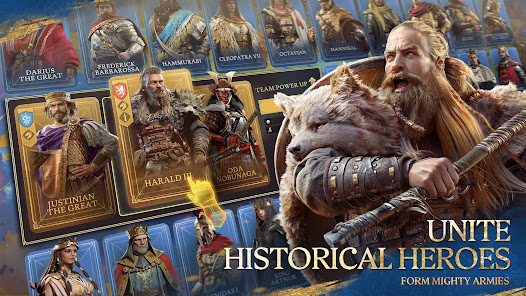 Select from over 40 epic heroes representing various civilizations. Legendary figures like Joan of Arc, Leonidas, and Julius Caesar are joined by intriguing new allies such as Miyamoto Musashi, Hua Mulan, and Rani Durgavati. Combine the unique attributes of these heroes and lead diverse troop types to create your own powerful and unique force!